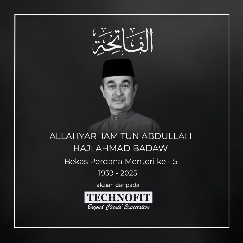 Pihak Pengurusan & seluruh Warga Kerja TECHNOFIT mengucapkan salam takziah kepada ahli keluarga Allahyarham Tun Abdullah Haji Ahmad Badawi, Bekas Perdana Menteri Ke-5 yang telah pulang ke-Rahmatullah pada Isnin, 14hb April 2025.