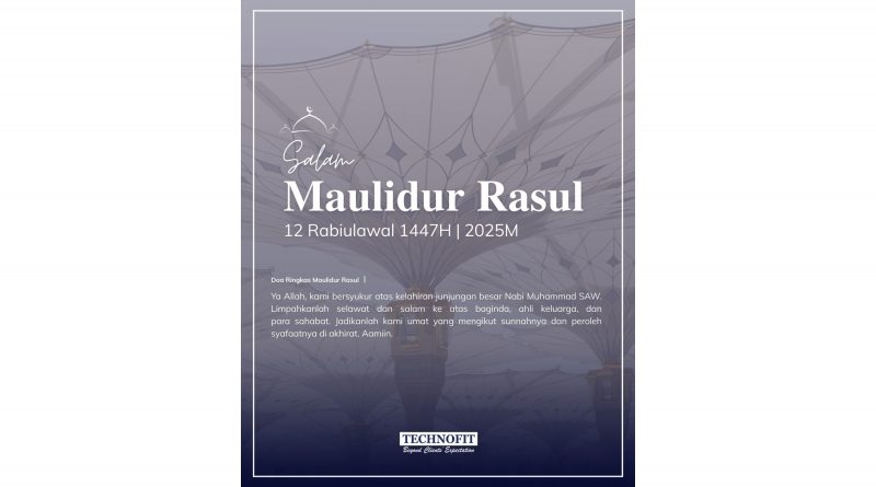 Read moreSALAM MAULIDUR RASUL 1447H / 2025M Seluruh Warga Kerja TECHNOFIT mengucapkan Salam Maulidur Rasul kepada semua muslimin dan muslimat. Semoga
