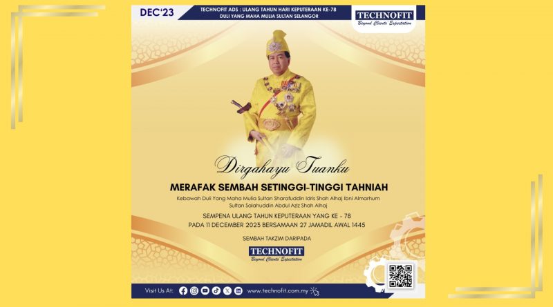 Read moreTECHNOFIT ADS : ULANG TAHUN HARI KEPUTERAAN KE-78 DULI YANG MAHA MULIA SULTAN SELANGOR DAULAT TUANKU Merafak sembah tahniah dan
