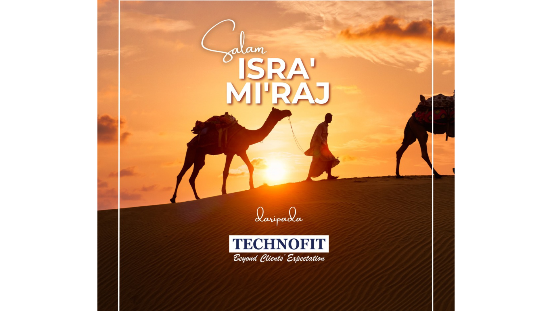 Lembaga Pengarah, Pihak Pengurusan, dan seluruh warga kerja TECHNOFIT mengucapkan Salam Isra’ dan Mi’raj kepada semua umat Islam. Semoga perjalanan mulia Rasulullah S.A.W. menjadi peringatan untuk kita semua dalam mempertingkatkan keperibadian serta kerohanian kita.