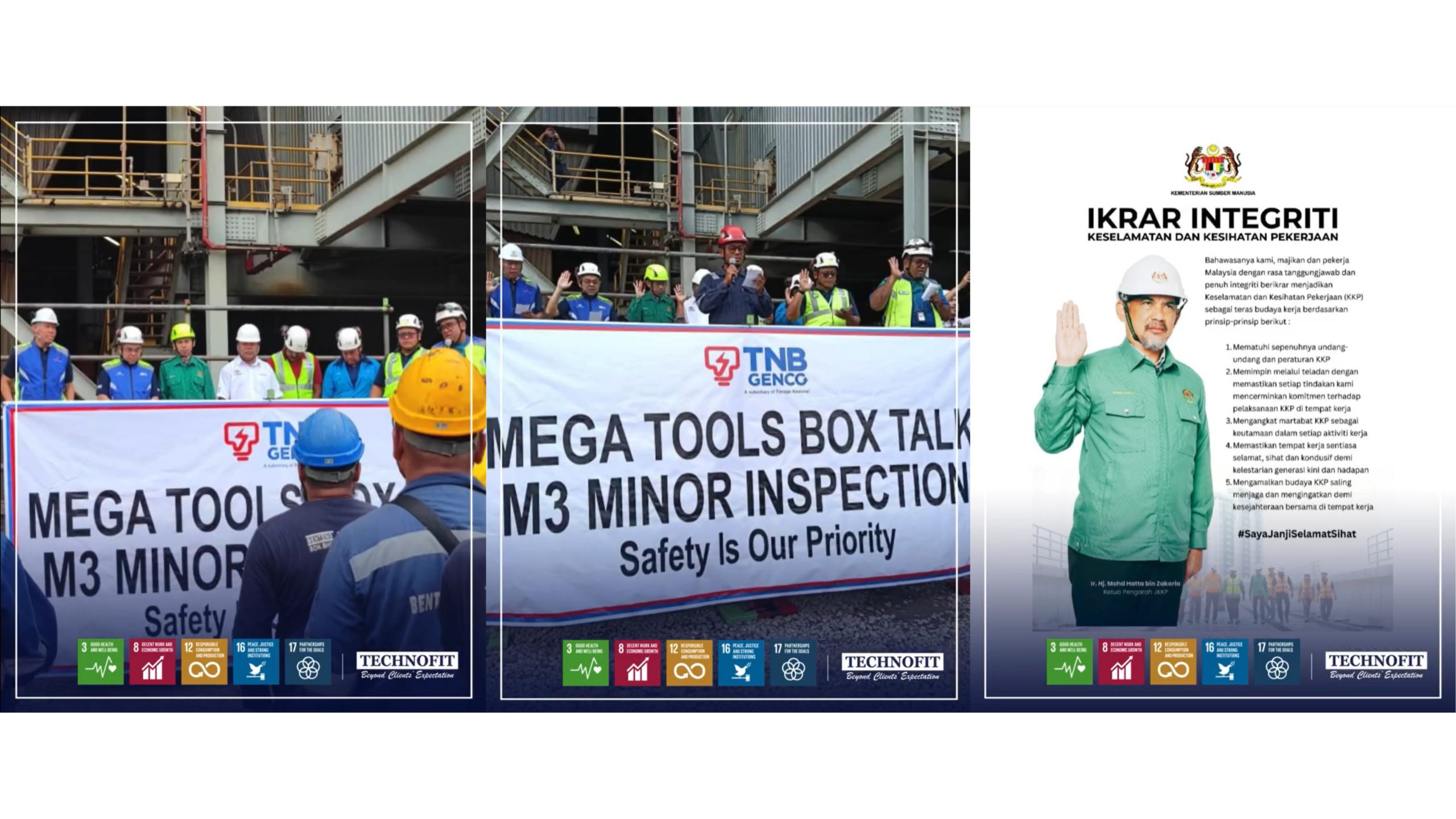 TECHNOFIT telah diberi kepercayaan untuk mengetuai bacaan Ikrar Integriti Keselamatan dan Kesihatan Pekerjaan (KKP) sempena Program MEGA TOOLS BOX TALK – M3 MINOR INSPECTION di TNB Janamanjung, Perak.