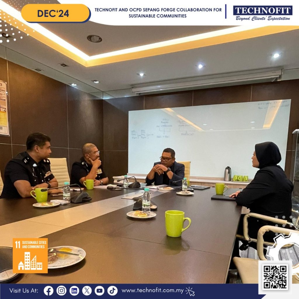 During the visit, Ybhg. Datuk Ts. Hj. Mohd Izuddin Hj. Mohd Ilias shared insights and discussed strategies to strengthen bilateral cooperation between TECHNOFIT and IPD Sepang, focusing on initiatives aligned with SDG 11: Sustainable Cities and Communities to enhance community safety and sustainability.