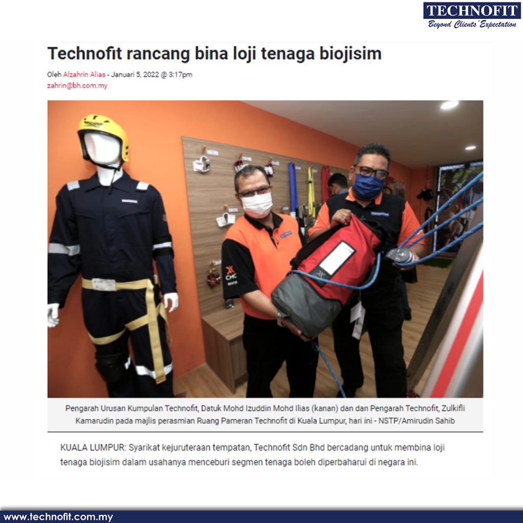 TECHNOFIT NEWS : TECHNOFIT FUTURE PLAN ON BIOMASS PLANT FEATURED IN BERITA HARIAN TODAY, 06/01/2022