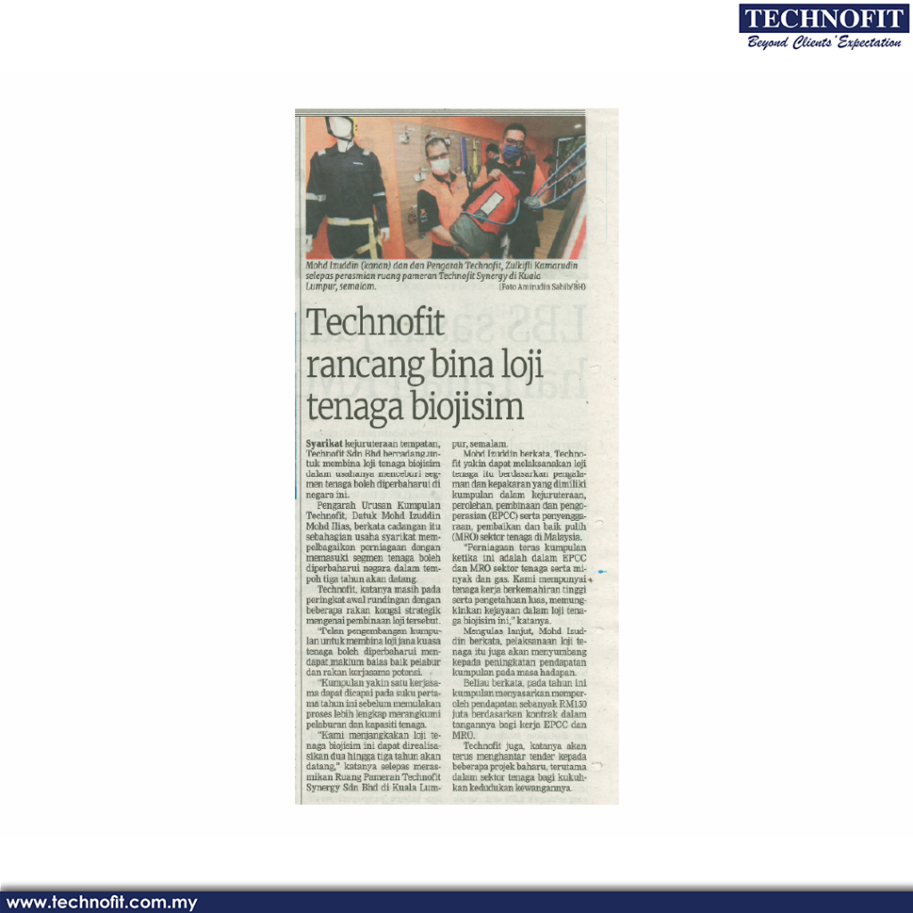 TECHNOFIT spotted in Berita Harian newspaper on its plan to have biomass powerplant.