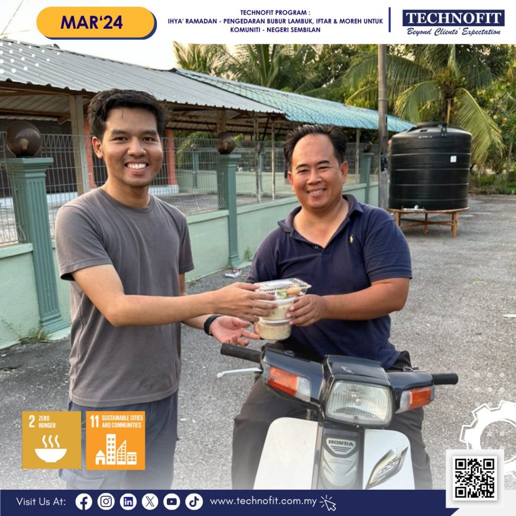 Inisiatif murni ini merupakan sebahagian daripada program Tanggungjawab Sosial Korporat (CSR) bulanan TECHNOFIT selain dari menghidupkan bulan suci Ramadan dengan aktiviti bersedekah. Seiring dengan Matlamat Pembangunan Mampan 2 dan 11 – menamatkan kelaparan, mencapai jaminan makanan dan nutrisi yang lebih baik dan menjadikan petempatan inklusif, selamat, berdaya tahan dan mampan, TECHNOFIT ingin turut sama menyumbang dalam usaha mencapai kedua dua matlamat ini.