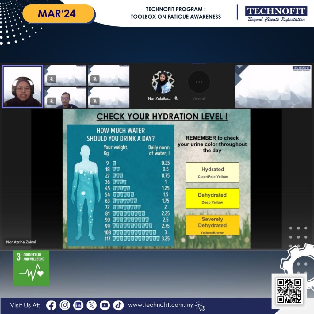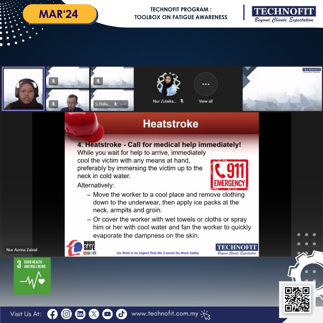 On 27th March, a monthly toolbox on health, safety and environment awareness is held virtually by Health, Safety & Environment Department. This month, HSE Department discusses awareness on climate condition and how it triggers fatigue. During the session, TECHNOFIT welcomes another special appearance by TECHNOFIT’s Business Unit General Manager, Mr. Sooria Narayanan and explores topic on eye strain. Thank you Mr. Sooria for the informative sharing!