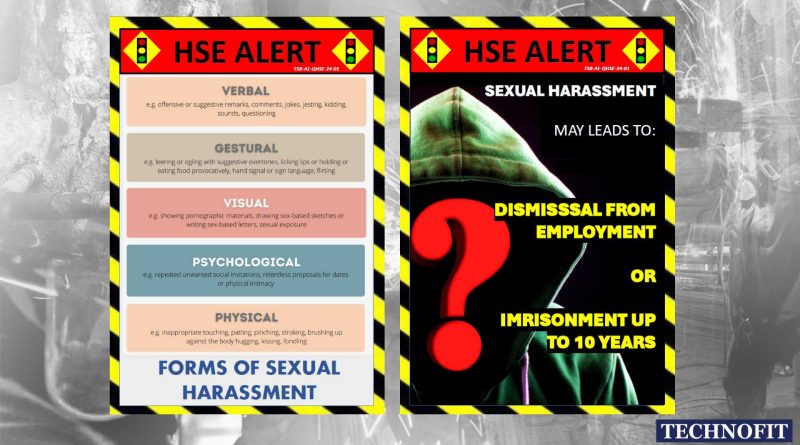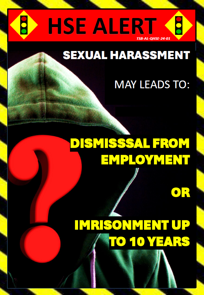 HSE Department would like to remind with all the employees to be alert with any approach of sexual harassment within your workplace as this is part of psychosocial hazard.
